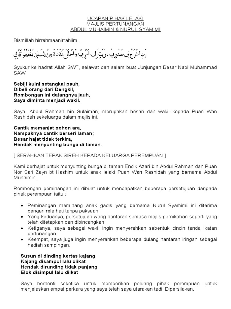 Majlis Meminang Ucapan Pihak Lelaki Pdf
