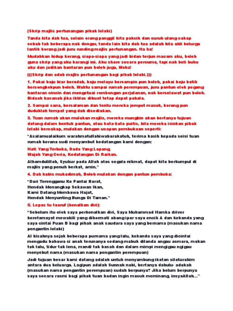 Skrip Majlis Pertunangan Pihak Lelaki Pdf